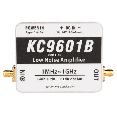 Frequence range: 1MHz-1GHz. Gain: 22dB typ. Po1dB: 23dBm. NF: 1.5dB. RF Connector: SMA. Power supply: 5V Type-C port/ 10-24V Power connector.