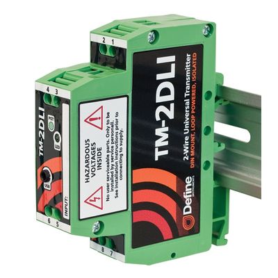 The TM-2DLI accepts one of several input signal types and generates a 4-20mA or 20-4mA output. This versatile 2-wire transmitter accepts a range of standard input types, and outputs a 4-20mA loop. USB programming is hassle free, and takes less than a minute using Define ToolBox.