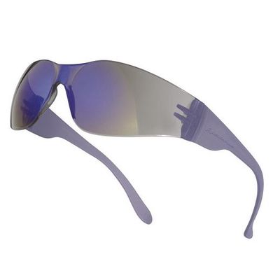 Polycarbonate single lens glasses. Soft flat spatula type arms. Integrated polycarbonate nose piece. Easy to use with safety helmet and ear defenders. Side protection.