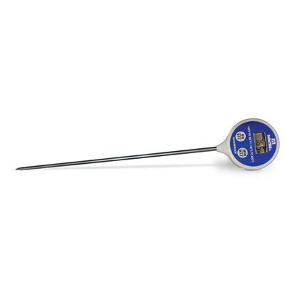 The Digital Lollipop Min/Max Thermometer (model 11048) is a waterproof thermometer with an 8 inch sharp tip probe. With a temperature range of -58°F to 392°F (-50°C to 200°C), this thermometer is ideal for measuring liquids with very high temperatures such as oils. The thermometer features a min/max reading memory which continuously records the minimum and maximum temperatures unit the thermometer shuts off or resets. The Digital Lollipop Min/Max Model 11048 has RoHS and CE Mark certification and can be field calibrated.