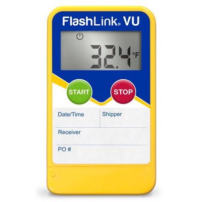 The FlashLink VU logger allows for access to temperature history data without having to stop the unit or download the data. DeltaTrak`s patented Shadow Log™ feature guarantees temperature history data even if the operator fails to start the logger. The single-use FlashLink® VU temperature logger is packaged in a highly visible yellow sleeve with easy to follow instructions and helps the receiver locate the logger very quickly.
