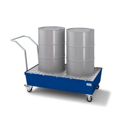 Spill Cart - 2 Drum Capacity - Painted Steel Construction - Removable Grating - Secure Storage. Compliant Sump volumes meet EPA, OSHA, NFPA, and other regulations. Secure Storage - Sumps are 100% tested and leak-free guaranteed. Solidly welded, all-steel construction for extended life. Platforms are and removable for easy clean up in case of a spill.