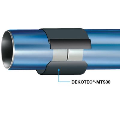 Cost-effective mastic sleeve solution for protecting welded seams on steel pipes against corrosion.DEKOTEC®-MTS30 is a heat-shrinkable sleeve consisting of an electron beam cross-linked polyethylene carrier film and a mastic adhesive for the corrosion prevention of the field joints at steel pipes. DEKOTEC®-MTS30 is applied directly to ST2-cleaned surfaces in accordance with ISO 8501-1. Sandblasting is not required, and there is no need to apply a primer.