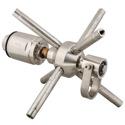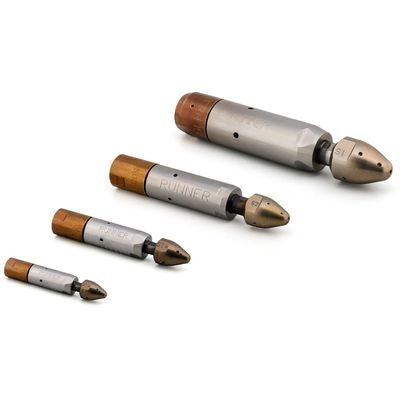 The DERC Runner Nozzle is a tube bundle cleaning nozzle, designed for cleaning heat exchanger tubes. It features a rotating design and effectively removes hard plugs or scales from the tubes. The Runner Nozzle comes in four different sizes, allowing for versatility in tube sizes.