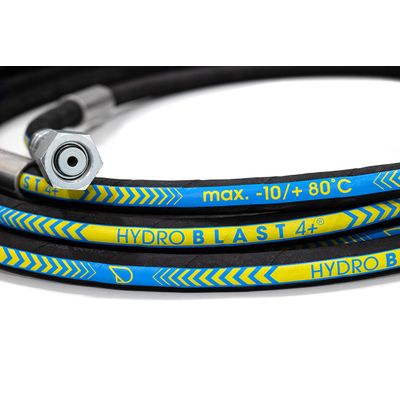 The DERC HYDROBLAST 4+ industrial high pressure hose is specially developed for the high pressure cleaning industry. The hose is capable of working pressures until 1100 bar and is produced with only 4 spiral layers, so a 3/4″ hose is still manageable. The hose has a short bend radius, is light weight and can be used with a water temperature up to +70° C.