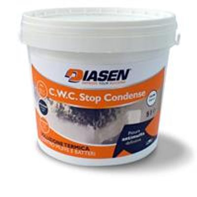 Anti-mold and anti-condensation paint for cold and wrongly insulated surfaces.White coating, latex-based, with particular mineral powders that, thanks to their insulating features, keeps the surfaces warmer, eliminating any thermal bridge. There is a +5°C difference between a surface treated with C.W.C. - Stop Condense and the one treated with a traditional paint. These extra heat degrees also prevent the air from condensing onto the wall, even if there is a relative humidity inside the room (up to 90%), eliminating in this way the formation of condense and therefore also mould.