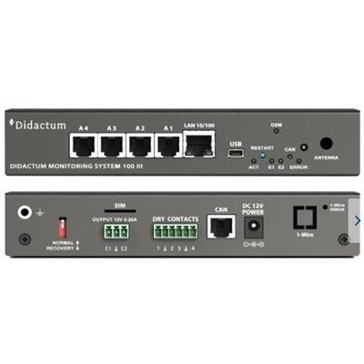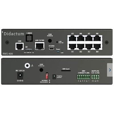 This monitoring device represents the latest model of Didactum`s IP-based remote measuring and alarm systems. This Remote Monitoring System (RMS) is an appliance, a combination of advanced hardware and software architecture. The engineering and support of the Didactum monitoring and alarm systems are located in Germany. Production takes place within the EU. This Ethernet-based surveillance solution is suitable for companies and public institutions (in almost all sectors). It is used where physical or man-made risks must be detected and reported as early as possible. Reduce unplanned downtime and production losses with this monitoring unit. The Remote Monitoring System 400 is Ethernet enabled - access this innovative monitoring system from anywhere. Also ideal for remote monitoring of branch offices and remote engineering locations.