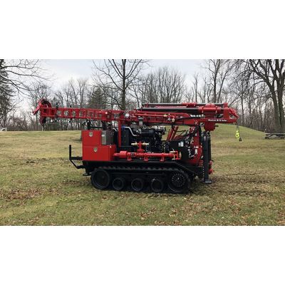 Heavy-duty drill rig for soil and rock exploration using augers, rotary tools or core drilling tools. Rated from 200 ft. (61m) to 350 ft. (107 m) depth with hollow stem or continuous flight augers up to 19” (483 mm) hole size. Rated to 2000 linear feet (610 m) of core drilling using N series tools.