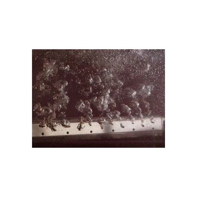 The SS Series Plenum Coarse Bubble Diffuser is designed for use in applications which require the delivery of higher CFM rates. Simplicity of design also makes the SS Series diffuser a cost effective alternative to other forms of coarse bubble diffusion. Its unitized design and construction has no moving parts to wear out or shake loose. These design and operational features assure trouble-free operation. The operating principle of the SS Series Plenum Diffuser is simple. It is a basic rectangular chamber with parallel groups of orifices of two different diameters located on both sides of it.