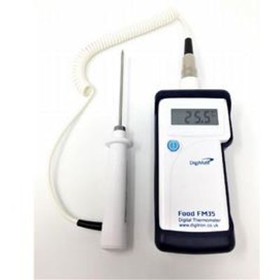 The FM10 pocket size digital thermometer is ideal for checking core temperatures of food before serving. Its large LCD and quick response time allow temperatures to be viewed quickly and easily. Benefits include a pointed food shaft for easy insertion