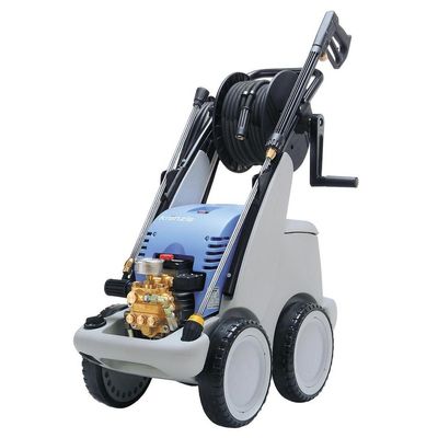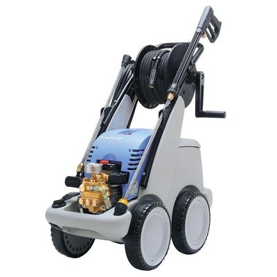 The K020T cold water electric pressure washer produces 2000 PSI, 1.9 gallons per minute and is perfect for use in factories or food-processing facilities. Built to the highest standards, the Kranzle pump can self-prime and run dry or on bypass for hours. Comes with a built-in hose reel, accessories holder and 35 ft power cord with a ground fault interrupter (GFI) to prevent electric shocks. Plenty of power in a small package.
