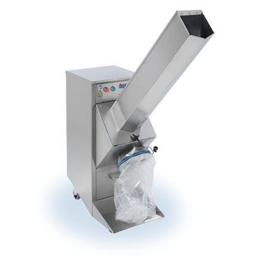 The MI-discharge cone is welded into an existing working bench or table top, allowing for food waste to be collected and ground in batches when required. The unit is designed for work stations with lesser waste volumes and frequent feeding but with extra high standards of cleanliness and noise levels.