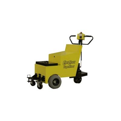 The CartCaddyWagonWheel is designed to pull or maneuver carts or trailers with a tongue that hinges up and down and could also turn an axle at the bottom of the cart. Usually there is a ring or eye at the end of these tongues that can attach with a pin or pintle hitch. Due to the nature of the swiveling tow arms it grabs, it doesn’t transfer weight from the load to the CartCaddy WagonWheel drive tires, explaining why the power tugger doesn’t include the electric lift kit. The CartCaddy Wagon Wheel gains its traction by the added steel weight installed over the top of the drive tires. The CartCaddyWW Power Tugger also has a wagon wheel steering system, which makes turning and maneuvering loads easier. This CartCaddy works well on carts or trailers that weight up to 10,000 lbs.