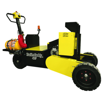 The TrailerCaddy 15k 36v, Heavy Duty Trailer Dolly can push and pull RVs, horse trailers, toy haulers, equipment dollies and trailers, and large boats. It is an incredibly valuable multi-purpose unit. The TrailerCaddy 15k 36v works great on 48′ & 53′ OTR trailers, tank, and lowboy trailers and other heavy commercial equipment trailers upwards of 50,000 lbs. in weight. up to 50,000 lbs. The TrailerCaddy is the perfect option for warehouses, manufacturers, distributors, or anyone who shunts heavy trailers short distances. With a compact motorized trailer, its variable speed and maneuverability make it an affordable alternative to traditional tractors or pickups.