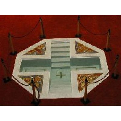 Are you looking to update or repair an existing baptismal font that may be leaking or are your building a new baptistery altogether? We have the design capabilities and welding expertise to provide a flexible, drop-in liner that can fit any baptismal font. We offer a wide variety of colors including sky blue, powder blue, white, robin egg as well as printed designs. No matter the size, shape or age – we provide a cost effective option to replacing the old and leaking baptismal font. We produced a custom-fit safety liner for the following font that was then finished using imported mosaic tiles. Note the step details that had to be included in the liner’s design.