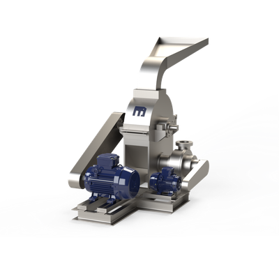 The DP Impact Pulveriser is a medium-speed, screen-less hammer mill that integrates feeding, grinding, and air classifying into a compact unit. It is designed to grind materials to medium fineness, using an adjustable whizzer classifier to achieve particle sizes ranging from 60 to 300 mesh. The mill's durability and versatility make it suitable for continuous operation in harsh conditions and diverse applications, including food, chemicals, minerals, and more. Driven by a single motor, the flexibility of this mill extends to its adjustable gap between the whizzer classifier and the whizzer cone, allowing for precise control over particle size. It can effectively handle materials from 0 to 25 mm and processes outputs from 10 kg/hr to 3000 kg/hr. An integrated impeller eliminates the need for an external fan, facilitating the pneumatic conveyance of materials out of the grinding chamber. For specific applications, such as grinding turmeric, the mill can include water-jacketed serrated liners to prevent heating and essential oil loss, as well as a check vibratory sifter for removing coarse fibers.