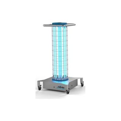 High-performance mobile UV irradiation tower for ambient air and surface disinfection as optimal supplement to wipe disinfection.