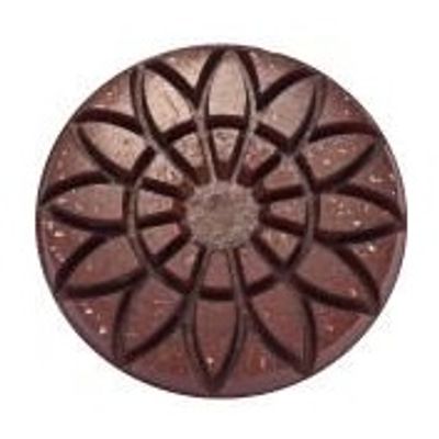 Beveled edge rides easily over lippage. Leaves a smooth scratch pattern. Hook & loop backed quick load and release. 3-hole pattern compatible with standard concrete machines. Female hook & loop backing. 3-hole system.