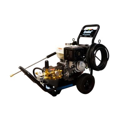 4,000 PSI @ 4.0 GPM - 13 HP Honda GX390 Gasoline Engine, Gear Reduced. Interpump Triplex Plunger Pump . Convertible Cart 2. Black Powder Coated Frame. Engine Oil Alert. Direct Drive. Gear Reduced. Thermal Pump Protection. Separate Easy Start Unloader. Five Quick Connect Nozzles (0°, 15°, 25°, 40° and Soap). Pneumatic 10” Wheels. Adjustable Chemical Injector. 50 ft High Pressure Hose. Inlet Filter. Insulated Trigger Gun. 36” Zinc Coated Lance with Plastic Grip. Assembled In Canada.