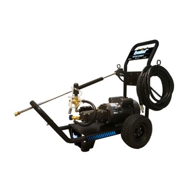 1,000 PSI @ 2.1 GPM - 1.5 HP Electric 120 V Motor. Interpump Triplex Plunger Pump. Convertible Cart 2. Black Powder Coated Frame. Slow Speed Direct Drive. External Unloader. Thermal Pump Protection. Five Quick Connect Nozzles (0°, 15°, 25°, 40° and Soap). Pneumatic 10” Wheels. Adjustable Chemical Injector. 50’ High Pressure Hose. 7m Power Cord. Inlet Filter. 36” Zinc Coated Lance with Plastic Grip. Assembled in Canada.