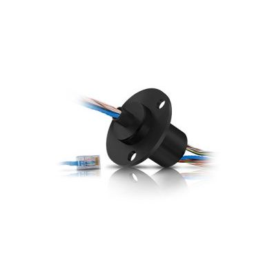 ESE Series slip rings provide 10OBase-T /10OOBase-T Ethernet connections with a combination of 2,5, and 10 amp power connections. Utilizing high performance gold-on-gold contacts, the ESE Series feature low electrical noise and Ethernet cables terminated with RJ45 connectors. Standard models are available from 8 - 51 circuits. Thru-bore options also available.