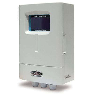The ECHO LEVEL HUNTER III is an advanced, low cost, ultrasonic level measurement system that utilizes the latest state-of-the-art technology to provide reliable measurement and control. It can accurately measure level and volume (pre-configured tank shapes) and perform alarm and fixed pump control for up to 4 pumps. Standard features include: 1 4-20mA output, 4 SPDT Relays, LED’s for alarm/pump status and Quick Setup menu-driven programming. It also comes standard with a RS-232 serial communication port and optional RS-485.