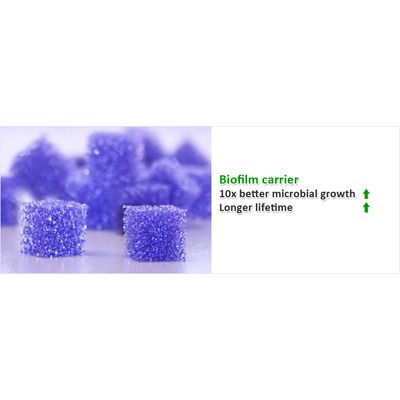 Experience our biofilm carrier and benefit from this low cost biological treatment to reduce sludge. The ideal solution for wastewater treatment. Our innovative biofilm carrier has a long lasting effect to easily grow microbes and keep the carrier in a strong durable shape. Microbial growth is stimulated with the open cell structure. The longer you have our biofilm carrier in use, the stronger the effectiveness to clean your water. Our superior material ensures you can truely benefit a long time from biotreatment processes to remove polutants in an ecofriendly way. Microorganisms that live in a biofilm carrier are effective against the following wastewater contaminants: carbon, ammonia, phosphorus, microplastics.