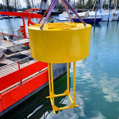 ecoTech measuring buoy (type Bodensee) with three insert tubes allowing the connection of a data logger, power supply or measuring devices. Equipped with ring screws to attach anchor lines so that the buoy may be attached to the lake bottom. The application areas are natural lakes and reservoirs of any size.