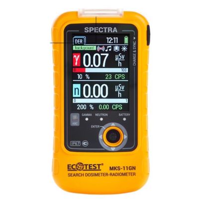 A top famous product of "ECOTEST" trademark, which is exported to over 70 countries. This is a professional device for official measurements, which measures the level of gamma background, beta contamination, accumulated dose and its accumulation time. Prompt evaluation of gamma background is performed within 10 seconds.