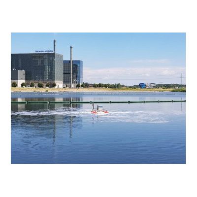 Control of flows and creation of treatment volumes in ponds. Stagnant water can mean oxygen-poor parts with decay and bad odors. Rapid water flow reduces the possibility of treating organic or inorganic material. Floating walls control the flow in the pond and thus optimize the possibilities for good water treatment in the entire pond through longer residence times and prevention of oxygen-poor parts. An installation of floating walls minimizes the occurrence of `leak currents` and thus eliminates hydrological short-circuiting. Furthermore, volumes can be created to improve the effect of other treatment such as aeration, dosing of chemicals or sedimentation.