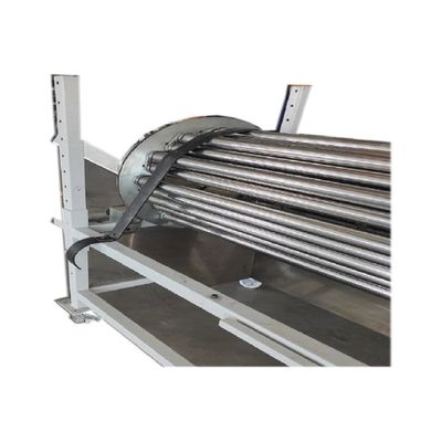 The machine has a pipe stack which can accommodate up to 1500 -1700 pipes of 60mm. The pipe dispenser will feed two pipes at a time and if it is necessary to run 2 sizes of pipe then we can provide partition in the dispenser. This is adjustable individually.