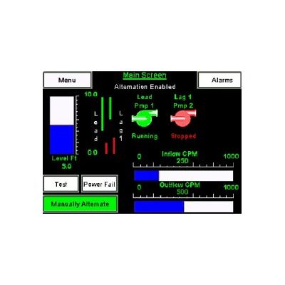 Customize pump operations through intuitive touch screen entries. Access critcal data on pump operating trends, alarm history, pump fail replacement, data logging and multiple alternation strategies, which are available as standard features on touch screens. Evaluate all operating functions quickly and easily using a unique System Test Screen. View all system parameters, including: alarm setpoints, timers, transmitter ranging and more through password protected touch screens.