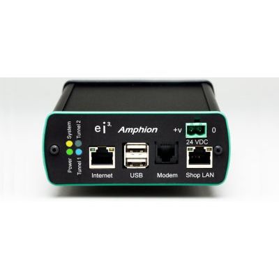 The Amphion model 14 – H RSSD, or Remote Service Security Device, provides a high-performance, secure, and reliable solution for remotely accessing machines. It works with Ei3’s SaaS applications for M2M and Smart Services including the Ei3 Remote Monitoring Cloud and Argo remote service platforms. The Amphion model 14 is built to be installed inside a machine control panel on the factory floor and has convenient features that make it easy to complete the installation and set-up process. Once a factory or a machine is connected to the internet using the Amphion model 14 machine data is monitored and stored within the Ei3 Remote Monitoring Cloud and secure access for remote service technicians can be controlled.