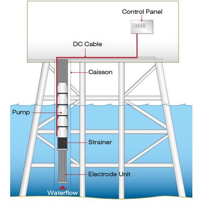 Marine Growth Prevention System that are designed to prevent blockages in seawater lines caused by the growth of barnacles and mussels. The system has been successfully applied to all types of offshore structures including oil rigs, oil platforms, semi-submersible and jack-up rigs using seawater for cooling or emergency fire fighting purposes.