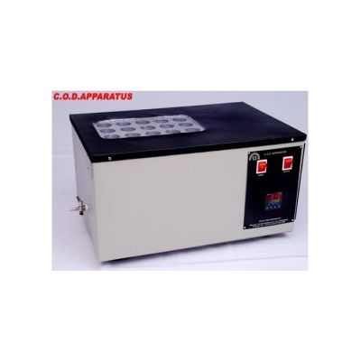 DIGITAL COD DIGESTOR is suitable for COD method for monitoring wastewater influent and effluent, industrial process water, and more. This instrument is used by Pollution Control Labs. Outer cabinet made of mild steel duly coated. Double wall construction with insulation for minimum heat losses increases the efficiency of the system. Aluminium Block with holes (Dimension 40mm Dia x 80mm Depth) is used to hold 15 nos. COD tubes. Aluminium Block is heated to maintain temperature up to 180 deg.C. Solid state Digital Temperature Controller, appropriate heater & insulation selection assure uniformity in all the samples. Selectable timer up to 120min. with alarm is provided to set the digestion period (Refluxing). After digestion, analyse the sample with either colorimetric or titrimetric method.
