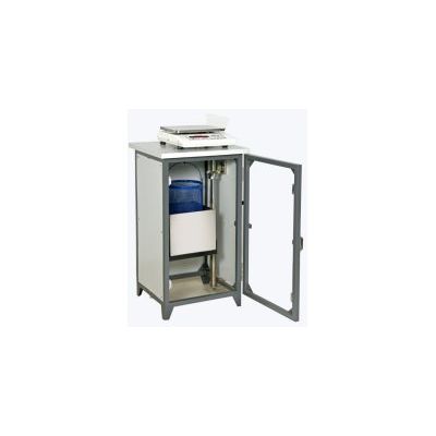 Consists of a rigid support frame, incorporating a water tank mounted on a platform. A mechanical lifting device is used to raise the water tank through the frame height immersing the specimen suspended below the balance. The balance supplied may also be used as a standard weighing device, thus providing a versatile and comprehensive weighing system in the laboratory. WEIGHING IN AIR AND IN WATER FRAME : Consisting of a rigid frame, water tank, and cradle.