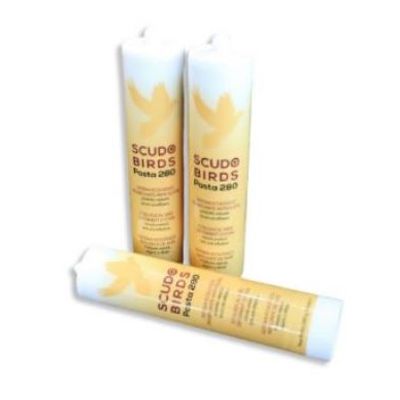 Scudo Birds is a ecological, non-VOC gel for birds control, made up of a mix of natural substances extracted from plants, fats and capsaicin. Ideal for removing pest birds, such as pigeons, starlings, crows, seagulls and small and medium-sized birds. To be applied on internal and external surfaces of adjacent buildings and structures (eg. cornices, roofs, window sills, statues, monuments, etc.), at a distance of about 10-25 cm, a quantity of 20 g of product from pour onto the special trays supplied. The quantity of a cartridge covers about 3,5 m/linear.