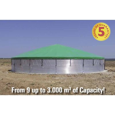 The tank offers flat truss roof system. The roof is first retrofitted with galvanized steel trusses, and then the roof area is covered by galvanized steel panels to complete the process. Ekotank Mars® also has 3 soft top solutions for applications that do not require steel roof. The indoor flat cover is made out of high-quality synthetic fabric which is fixed on to the roof-top to make sure that the quality of water or the liquid inside is preserved. For outdoor applications, the conical shaped cover is specifically designed to offload rain and snow loads making sure that the water or liquid keeps its quality without contamination. The floating cover is designed mostly for agriculture and rainwater collection scenerios where the top of the tank will float with the water level preventing large debris and UV rays affecting the water quality.