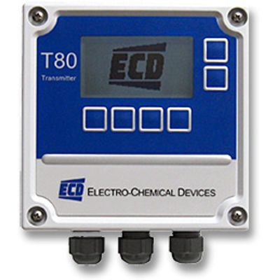 The ECD Universal Transmitter – Model T80 Series is a single or dual channel transmitter designed for the continuous measurement of pH, ORP, pION, Dissolved Oxygen, Turbidity, Conductivity or Resistivity in a general purpose industrial environment. The Model T80 transmitter digitally communicates with any ECD Model S80 Intelligent Sensor, automatically configuring the transmitter’s menus and display screens to the measured parameter.