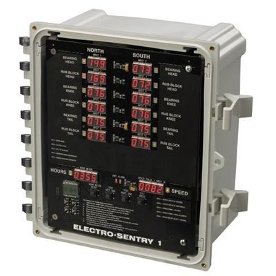 The Electro-Sentry 1 Controller is part of a hazard monitoring system commonly used on grain elevator legs or conveyors to monitor critical points for shaft slowdown, bearing temperature, and belt alignment as part of a predictive maintenance program to protect against catastrophic breakdowns and machinery failure resulting in product waste, machinery damage, and process downtime. Electro-Sensors` 4-20mA Speed & Temperature sensors are compatible with the ES1 and provide live sensor data of machine performance.