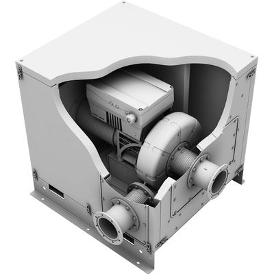 High-pressure applications at room volume with the Elektror BOX multifunctional sound insulation cover. With integrated active cooling, vibration decoupling and control. High-pressure applications at room volume with the Elektror BOX. High-pressure ventilation applications require high speeds from industrial fans. This means noise – often too much for the ergonomic requirements in the direct working environment. The BOX complete housing solution reduces noise by up to 29 dB(A)– virtually to room volume. Thanks to integrated compensators and rubber-metal buffers, a vibration-decoupled installation of the fans is also possible. In addition, the BOX features active fan self-cooling and a control system that can be integrated. The functional reliability of the fan is also increased because the intake air flow is protected from small parts.