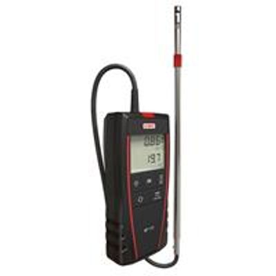 Transmisor multifunción para sensores de presión diferencial, temperatura y humedad, velocidad y caudal del aire con sondas térmicas, molinete, omnidireccional aspas Debimo o tibo de Pitot, calidad del aire con sondas de CO2 y CO. Dos entradas para sondas externas intercambiables Cuatro alarmas visuales y audibles. Dos salidas analógicas 0-5 / 10 V o 0 / 4-20 mA Comunicación Ethernet (opcional) y MODBUS RS485 (opcional) Certificado de ajuste Pantalla con muestra de hasta 4 parámetros simultáneamente. Indicación de tendencia. Salida de 4 relés (opcional). Alimentación 24 Vac/Vdc ó 115/230 Vac. Carcasa de ABS con frontal de acero inoxidable, IP65, Con o sin pantalla gráfica retroiluminada. Montaje sobre base de fijación en pared mediante sistema ¼ de vuelta.Sauermann Kimo - Portable air velocity, flow and temperature meter with hot wire probe