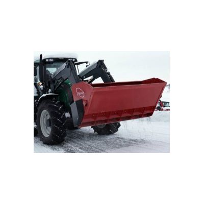 Self-loading spreader built as a bucket. SMA is used for spreading sand, salt or grit. The spreading material is distributed by a feeding auger. Its quantity is determined by the speed of auger (controlled by the hydraulic flow regulator on the spreader). The spreader can be mounted on front/back of the tractor or on the front-loader. To be used with the 3-point attachment with self-loading function a hydraulic adapter on the tractor is necessary (length circa 50-110 cm). A grinding rod is used for the constant movement of the material and its crushing before entering the auger.