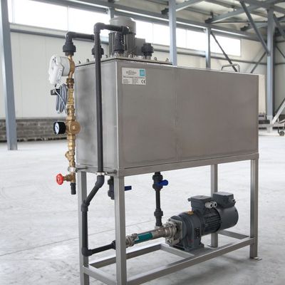 Most compact unit designed for the sole purpose of diluting polyelectrolyte emulsion. Construction focused on minimum size and simplicity. Applicable where polyelectrolyte consumption is low and purchase and running costs have to be kept at lowest level. This compact unit consists of a emulssion storage tank, a pump and dilution tank with a mixer. It offers a unique feature of supplying solution without a pump, using the raw water pressure to supply the product.