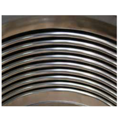 Bellows are the key component of an Emiflex joint. It is defined as a highly flexible metal element that resists pressure. Bellows are obtained by a mechanical or hydraulic cold forming process. The austhenitic stainless steel is longitudinally welded using theT.I.G. welding method and the bellows are shaped into a serious of parallel corrugations. To achieve maximum flexibility coupled with the required resistance to pressure, bellows are formed with multiple walls using a number of concentric cylinders of stainless steel, each longitudinally welded. In this way, all the walls contribute to providing pressure resistance, while flexibility is ensured by the reduced thickness of each wall.