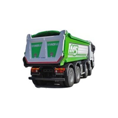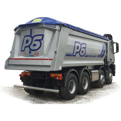 The P6 EXPORT stems from the need to offer customers an end dump superstructure with front cylinder (square body) with straight load bed to allow maximum exploitation of width. P6 EXPORT inherits S5EVO technology (same counter chassis and hydraulic tilting system) as well as the internal dimensions of the T5 (trilateral), including the standard folding/streamer tailgate opening. The P6 EXPORT is designed with a hydraulic side gate opening option that operators top to bottom (CAMALEONTE version).