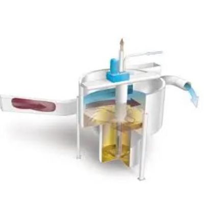 The vortex-type grit chambers (also called accelerated grit separation devices) utilize both gravitational and centrifugal forces for the separation of grit. This type of unit is designed to remove grits of specific gravity 2.5 or larger with sizes ranging from 0.15 (100-mesh) to 2mm(10-mesh).
