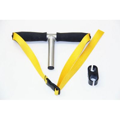 The Adjustable Footrest is designed for users whose feet cannot reach the standard foot position. The adjustable T shaped footrest attaches to the Bi-Unique`s round downtube. It includes a strap and buckle to secure the feet. The Strap is only available in yellow. Most Bi-Uniques have a 1" downtube and need a 1" clamp. The Kids Bi-Uniques have a 7/8" downtube and need a 7/8" clamp.