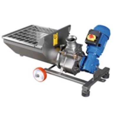The pump structure is totally built using carpentry techniques and is fitted onto a tank with a screw feeder. All parts are in inox AISI 304 steel. The elliptical rotor is made of a higly resistant thermo-plastic material. It is wheel-mounted, thus making it easier to move in cellar areas and has a simple vibrationdamping device which gives a high degree of stability when it is stationary during work phases.