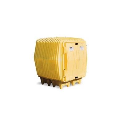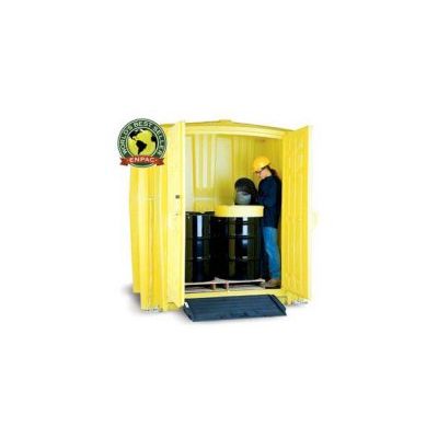When floor space is at a premium indoors, take your hazardous materials outdoors with the Hazard Hut. One-piece molded 100% polyethylene construction means there are no joints or seams to leak. Molded-in side vents reduce fumes, while UV protection makes it a durable performer outside. Removable grates make it easy to clean and the 72-gallon sump capacity ensures leak and spill containment.